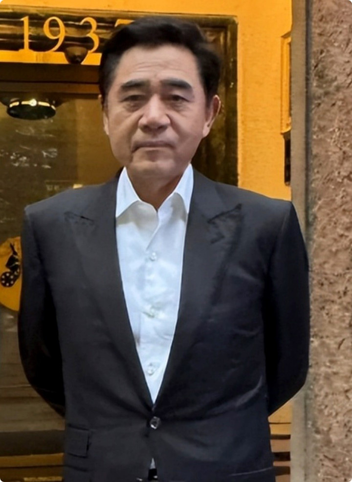 身着黑色西装的他,五官依旧立体,眼神沉稳有力。