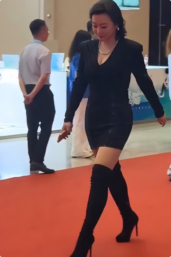 郝蕾一身黑色紧身短裙亮相,造型算不上惊艳,却意外抓人眼球。
