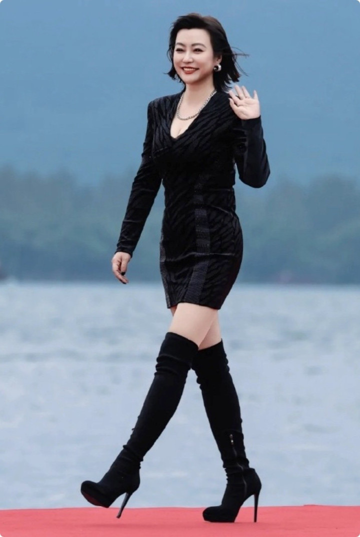 她常年活跃在戏曲舞台,长期训练带来的挺拔身姿,让她走在红毯上时,哪怕不说话,也自带气场。