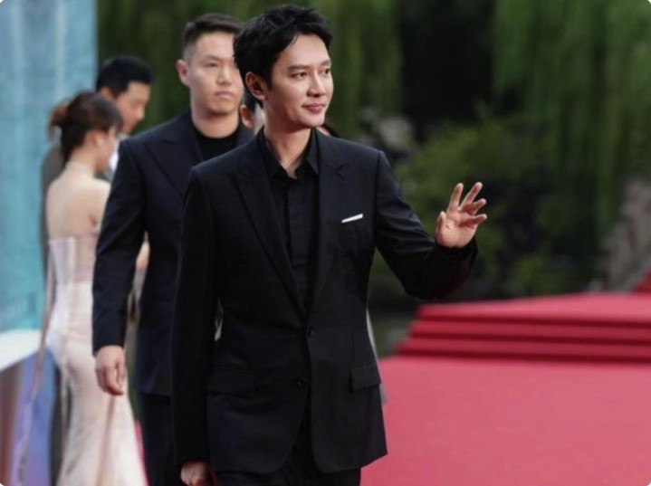 走上红毯,陈宝国浑身散发着一种不容忽视的威慑力。
